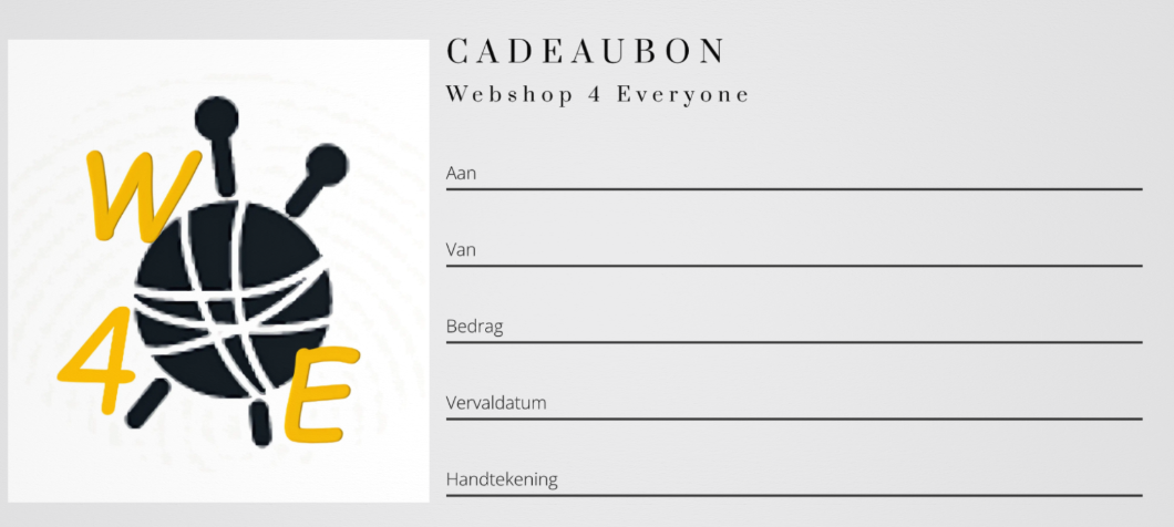 De W4E cadeaubon is te bestellen in de variant €5, €10, €15, €20 & €25